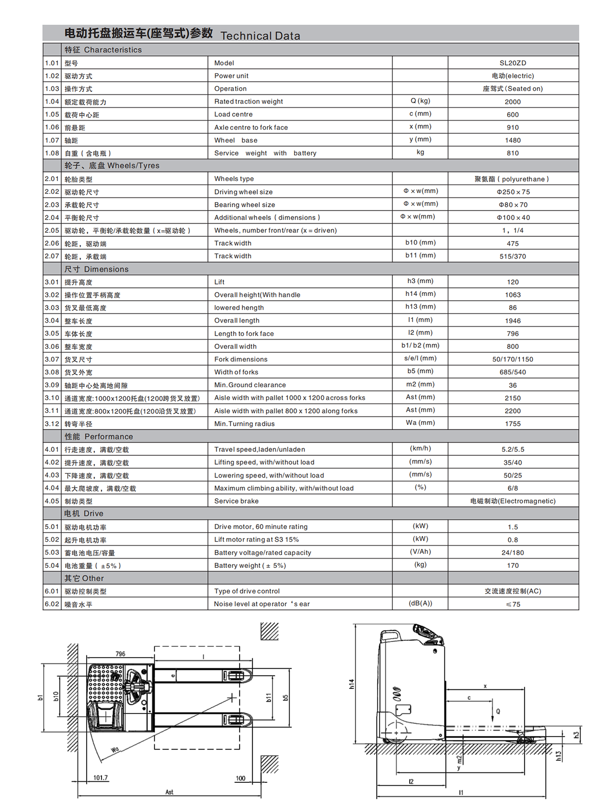 Electric, Seated on, 2T, 24V/180Ah, PU wheels, AC drive control